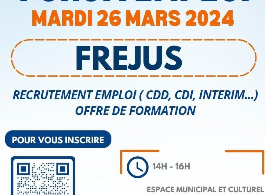 Nous serons présent au forum de l’emploi le 26 mars 2024 à l’espace municipal et culturel de Fréjus (salle bateau) au quartier port Fréjus de 14 H 00 à 16 H 00. Venez avec vos CV !!!